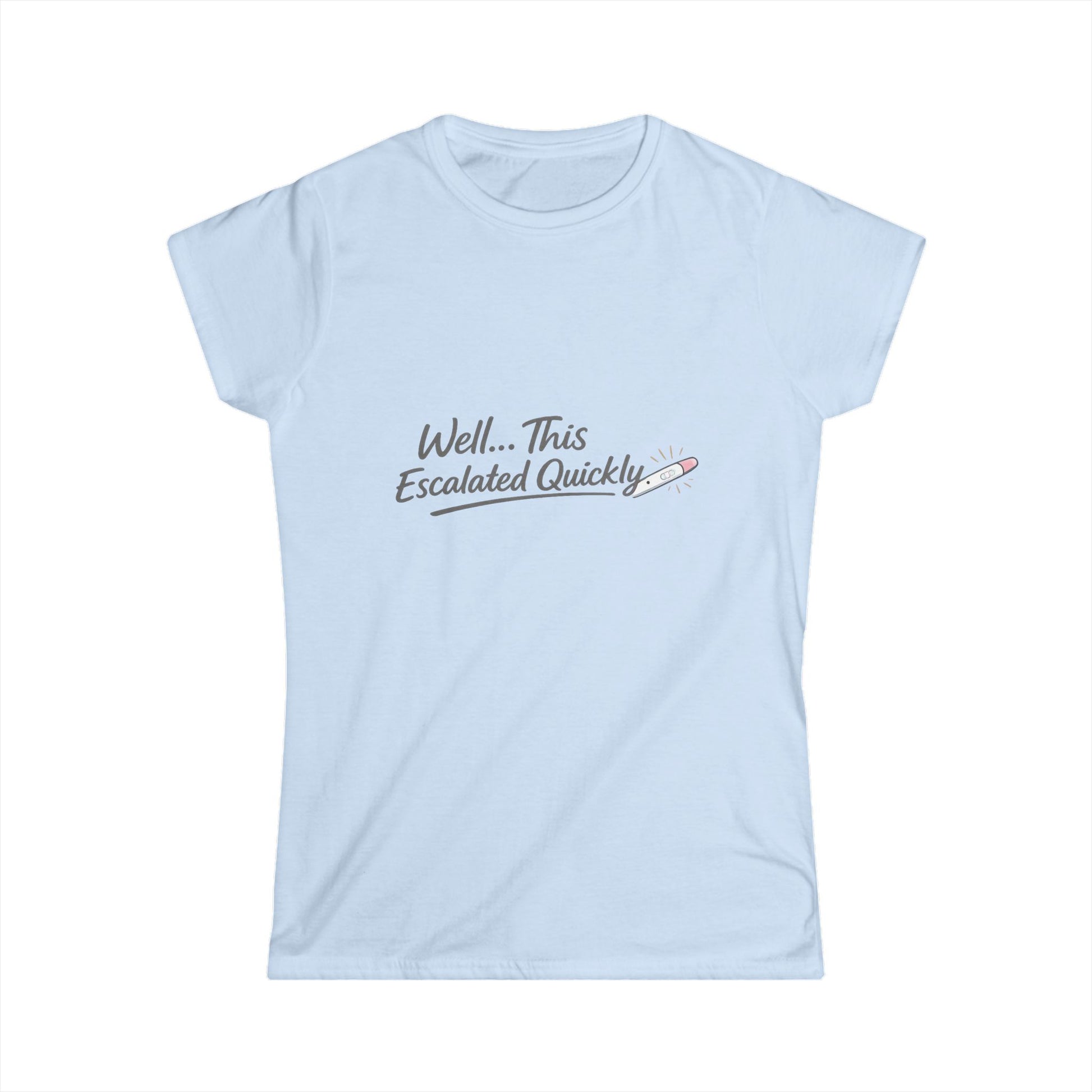 Soft, light, and quietly witty — this tee slips into everyday life with a breezy sense of humor. A slim, semi-fitted silhouette and delicate script on the chest read “Well... This Escalated Quickly,” paired with a tiny pink pencil graphic. It feels like the kind of shirt you reach for when you want to shrug at life’s unexpected moments: coffee in hand, errands to run, or a low-key catch-up with friends. The fabric is airy and comfortable against skin, with a ribbed collar and reinforced seams that keep the shape wash after wash. The understated design nods to playful sarcasm without shouting for attention, making it easy to layer under a jacket or wear on its own.